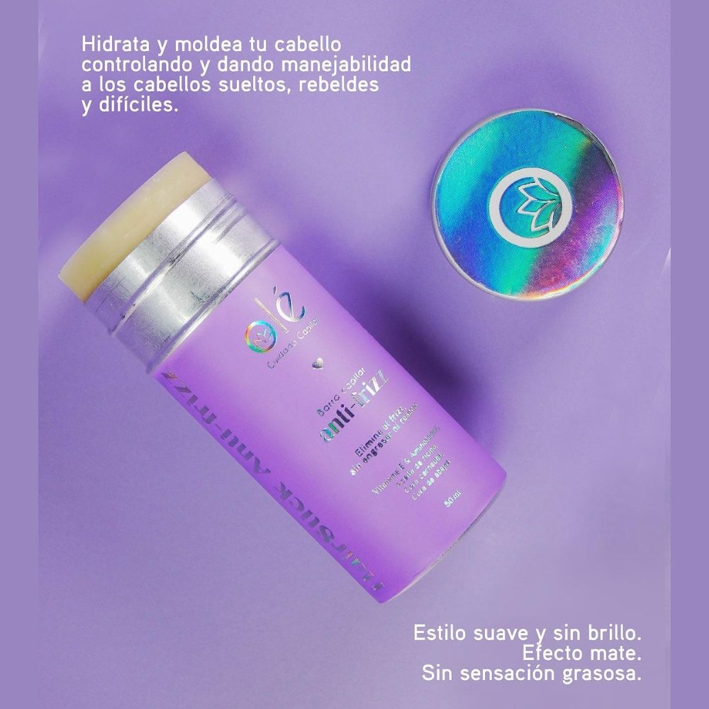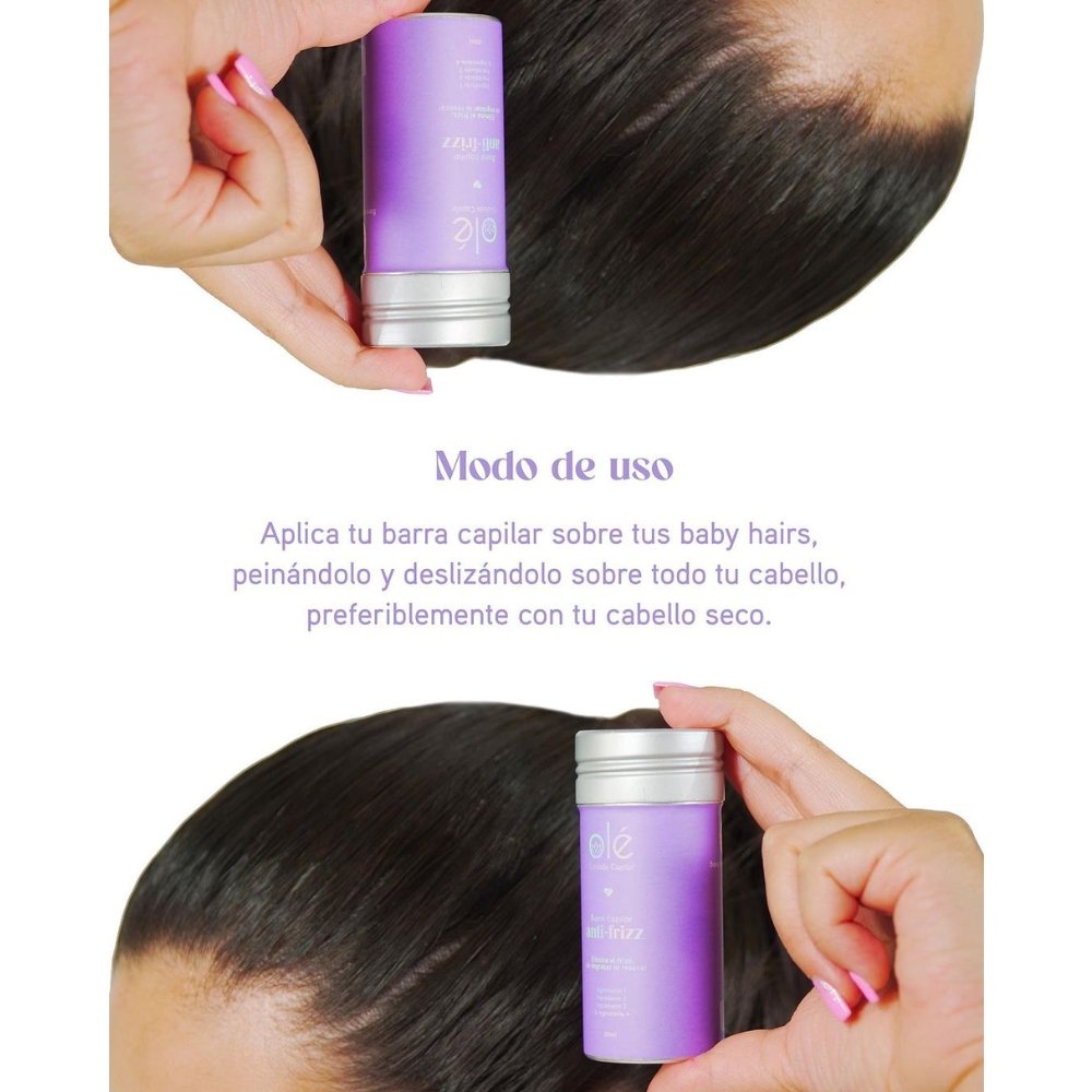 La cera capilar en barra de Olé es un producto innovador diseñado para moldear, fijar y controlar el cabello de manera práctica y precisa. Su formato en stick permite aplicarla directamente sobre las zonas deseadas, facilitando el manejo de los baby hairs, el frizz y los cabellos rebeldes sin necesidad de herramientas adicionales.