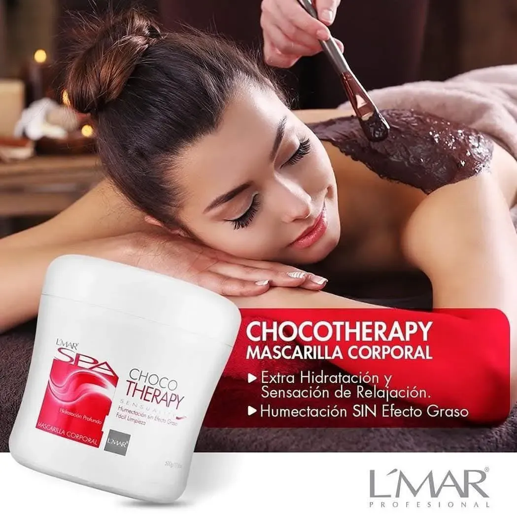 La L.MAR  Mascarilla Chocotherapy es una mascarilla corporal de chocolaterapia con cacao y aromaterapia que hidrata profundamente la piel, la suaviza y la deja perfumada, al mismo tiempo que proporciona una experiencia relajante y sensorial sin sensación grasa.