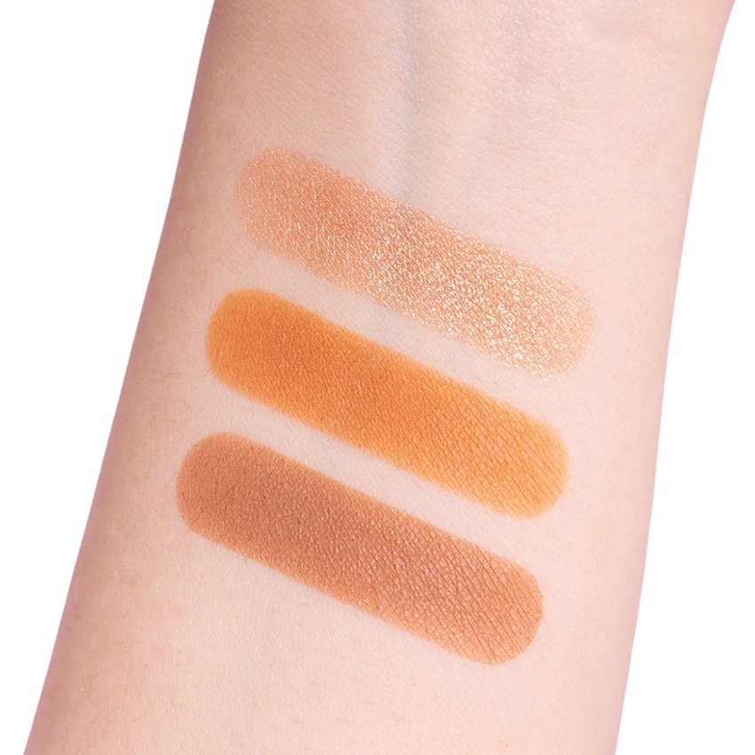 La paleta incluye tonos versátiles que se adaptan a diferentes tipos de piel, permitiendo crear profundidad en zonas estratégicas como pómulos, mandíbula y nariz, mientras que los tonos iluminadores aportan luz en puntos clave del rostro, logrando un efecto equilibrado y radiante.