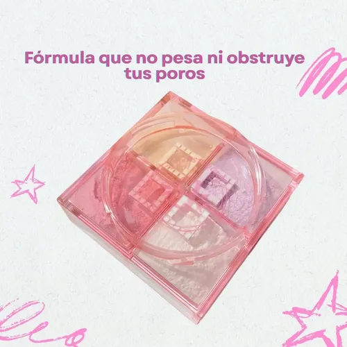 Polvo Bloomshell 4 Colores es un producto versátil diseñado para realzar la belleza natural de la piel con un acabado uniforme, suave y radiante. Su innovadora presentación combina cuatro tonos complementarios que se adaptan a diferentes tipos de piel, permitiendo matificar, iluminar y dar un toque de color de manera equilibrada. Su textura ligera se difumina fácilmente, ayudando a controlar el brillo y a fijar el maquillaje sin obstruir los poros. Ideal para lograr un look fresco y natural, este polvo deja la piel con una apariencia tersa, luminosa y perfectamente acabada durante todo el día.