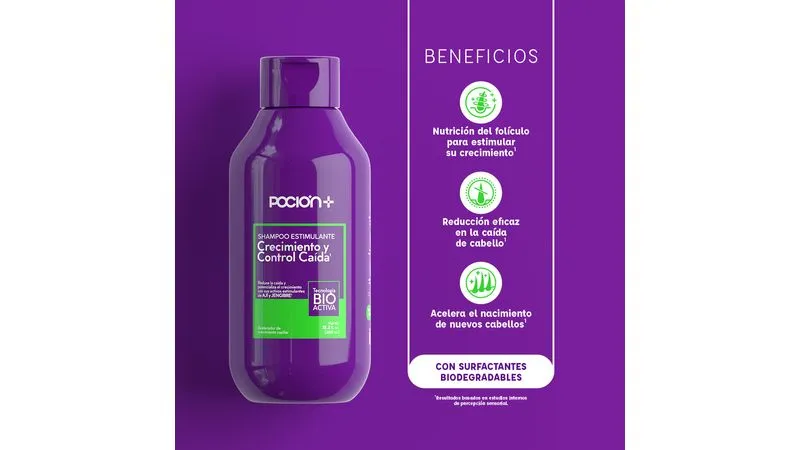 El shampoo Poción Control Caída está especialmente formulado para fortalecer el cabello desde la raíz y reducir la caída progresiva causada por factores como el estrés, cambios hormonales o debilidad capilar. Su fórmula combina ingredientes nutritivos y revitalizantes que estimulan el cuero cabelludo, mejoran la circulación y favorecen el crecimiento de un cabello más fuerte, resistente y saludable.