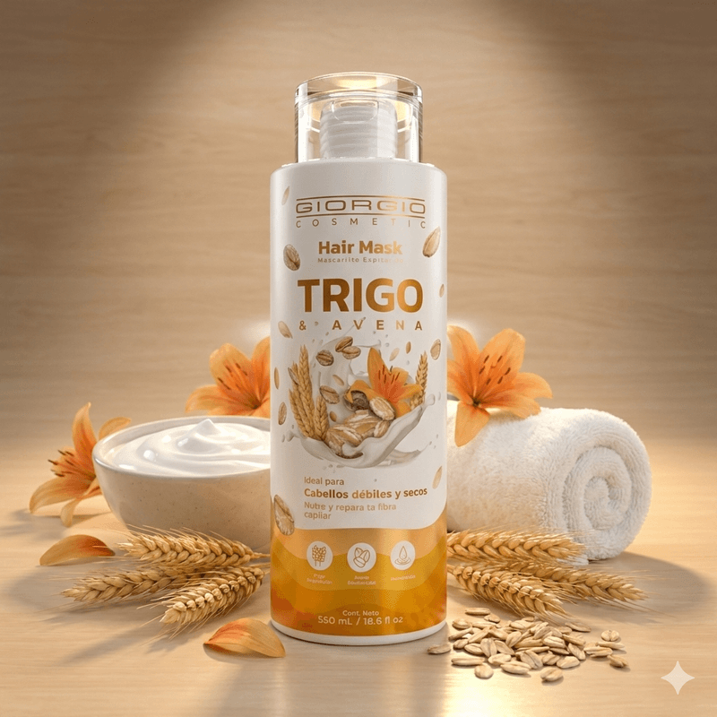 El Tratamiento de Trigo y Avena de Giorgio es un cuidado capilar intensivo diseñado para nutrir, fortalecer y reparar el cabello dañado o debilitado. Su fórmula enriquecida con extractos naturales de trigo y avena aporta hidratación profunda, mejora la elasticidad y ayuda a prevenir la rotura. Además, protege el cabello de los daños causados por el calor, la contaminación y los procesos químicos, dejando la fibra capilar más suave, manejable y con un brillo saludable. Ideal para todo tipo de cabello, este tratamiento transforma incluso los cabellos más secos y opacos, devolviéndoles vitalidad, suavidad y fuerza desde la raíz hasta las puntas.