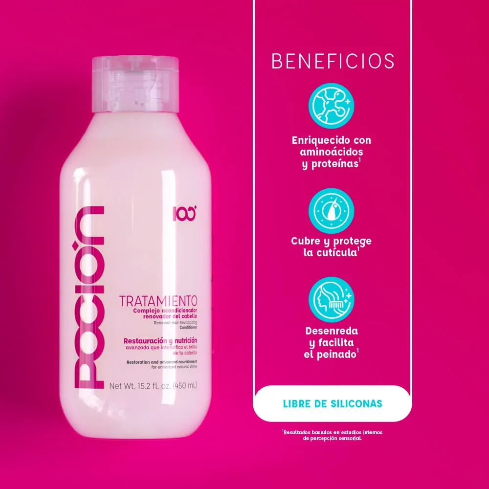 El Tratamiento Restauración y Nutrición de Poción está formulado para devolverle la vida al cabello seco, dañado o sin brillo. Su poderosa combinación de ingredientes nutritivos penetra profundamente en la fibra capilar, ayudando a reparar el daño desde el interior mientras hidrata intensamente.